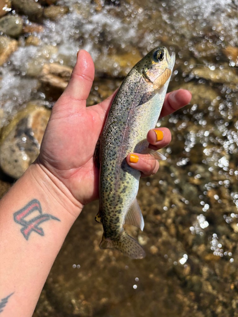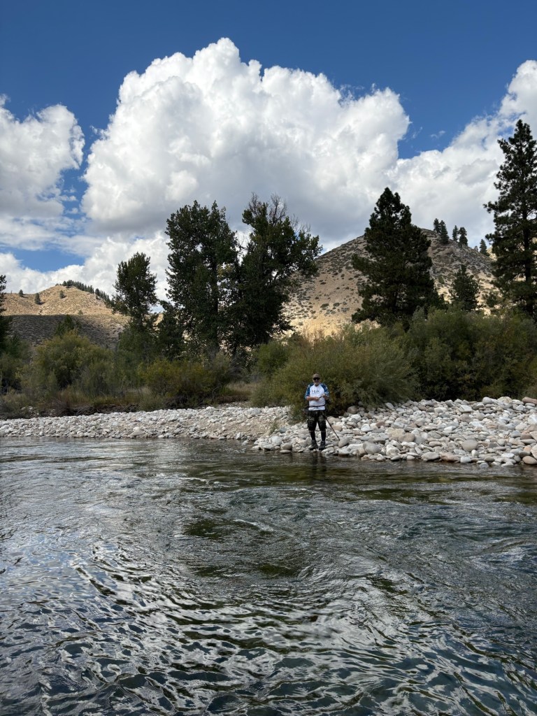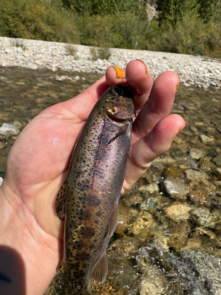 Even with the ditch and flat tire, Tom and I were able to fish on the South Fork of the Boise River which ran just behind out campsite. I caught rainbows and mountain white fish. This was one of my target species for this trip! They have tiny mouths and I caught them on my kebari or tailtucker nymphs deep in runs as they were mostly sitting on the bottom. They were not rising too much. The fish that were rising for my kebari were the rainbows.