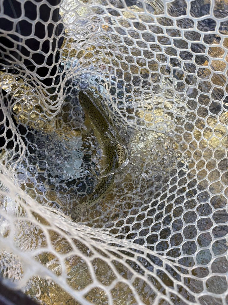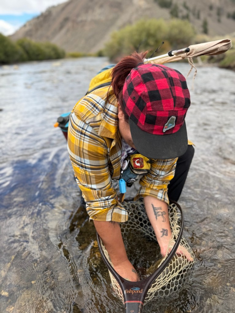 He gave me a few options in terms of fish to catch and places to fish and we ended up going to a pretty lovely secluded spot where we were the only anglers and only saw one person who was working for someone building a house on some land that was along the water. Unfortunately, there have been people moving to the area that have caused some ruckus when fishing. It isn’t the prettiest thing when you expect to see mountains, the sky, and water flowing in and out of view from the dirt road. Now, there were construction vehicles and loud noises. It was funny to note that these soon-to-be residents thought they owned the waterways, when, in the state of Idaho, it is law that the high water mark is the public’s domain. So, as long as you enter the water from public land, and walk the water, then you are surely within your limits to travel that walkable path and fish.