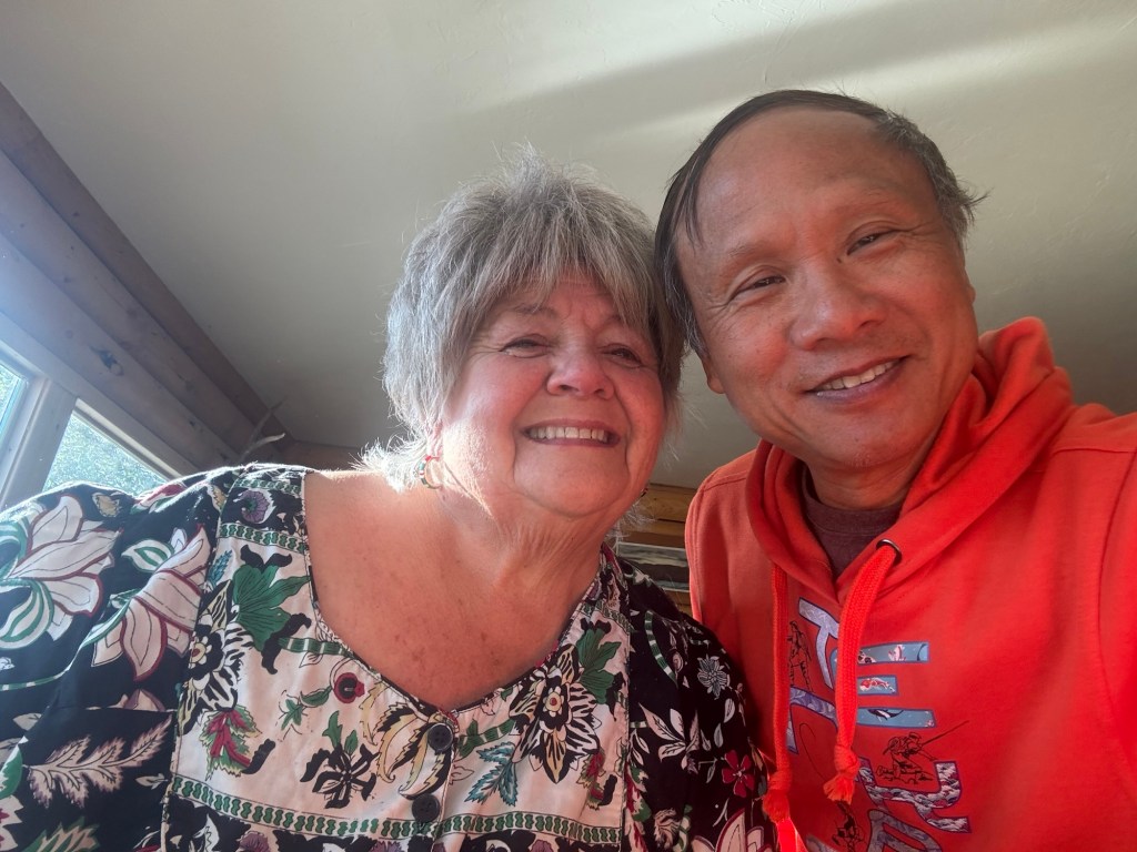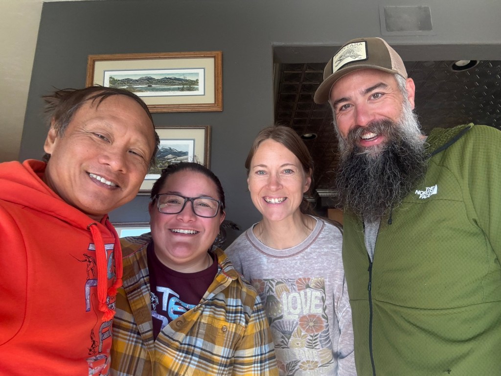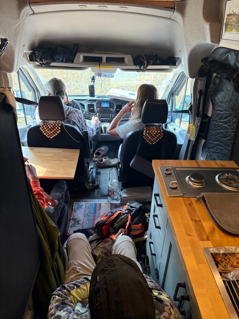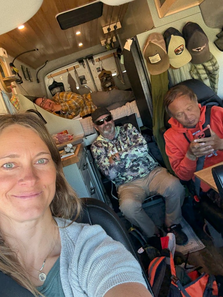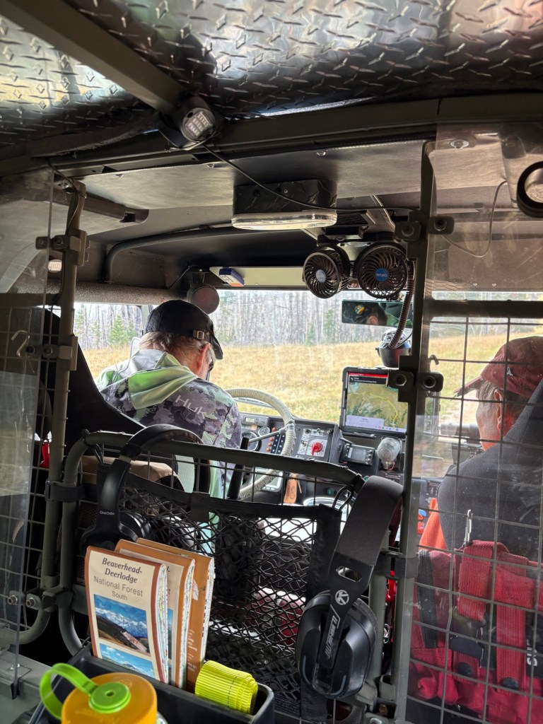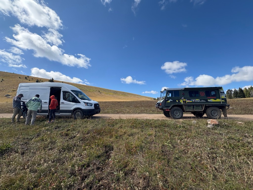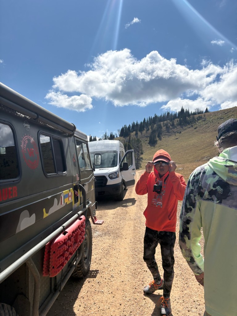 In the meantime, while Tom looked under the hood…or, rather the middle console where all the nuts n bolts are to the Pinz are, Luong was having a blast playing with his drone. The sights were fun and although we were pretty secluded on this mountain, we saw hunters and a ranch hand out and about. They were nice and stopped to chat, but we already had help coming in Josh and Stephanie!