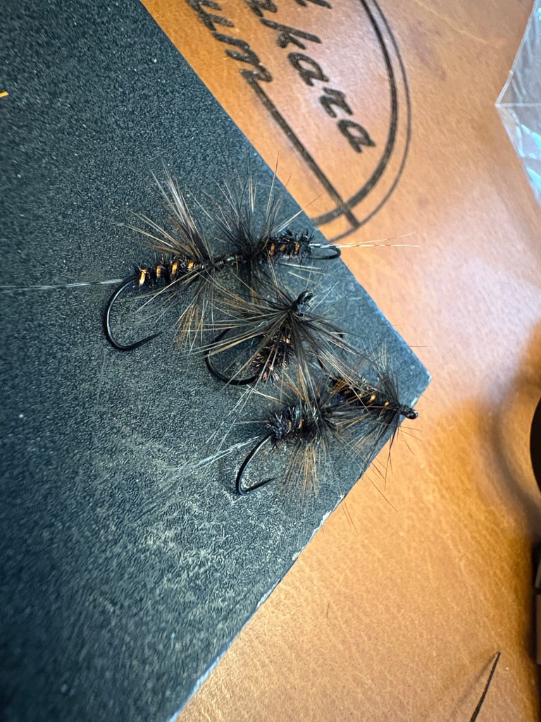 In the beginning of my tying, I tied dark flies because of my thinking that “bugs are black”. I also tied with certain hackle and colors because of what I saw on the internet, but mainly settled on darker bugs and 3-4 ingredient flies. Because of this, if anyone were to ask me what my go-to and confidence fly is, then it would be my extremely generic size 14 black bodied sakasa kebari with a soft, brown speckled hackle. I typically oversize my hackle to the hook size, but it doesn’t really matter. In my opinion, the quicker the tie, the better it will be to catch a fish with. I like to be minimal in my fly tying as is my tenkara practice and I can tie these 3 ingredient flies in under 2 minutes each.
